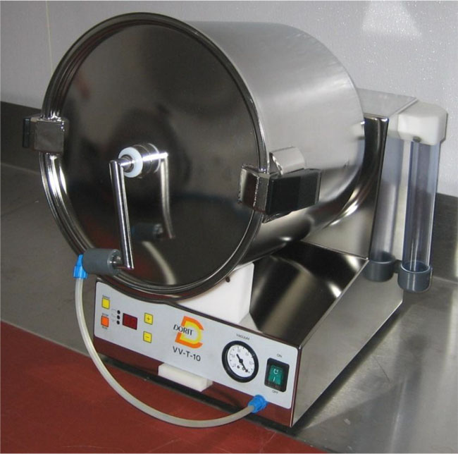 Dorit-DFT Fleischereimaschinen GmbH is able to supply a complete range of vacuum tumblers with a capacity from 25 to 7500 litres, due to our long history of production in this field. Within our expansive range of equipment, we can offer the ideal unit for butcher, shops or restaurants and hotels, as well as units for medium and large industrial processors. Further technological alternatives available to our customers are our vacuum pressure- and cooling tumblers, which work either together as a double-jacket version with glycol or as units, injecting liquid nitrogen or carbon dioxide. This procedure guarantees an optimal protein extraction.